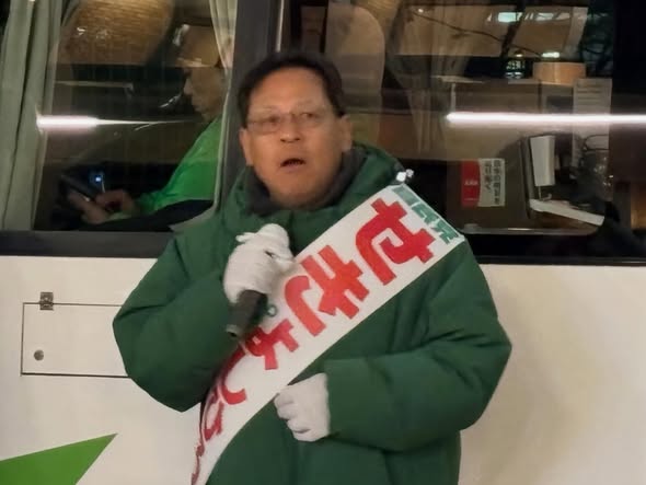 只今、名谷駅にて夜のご挨拶をさせて頂いております。