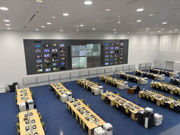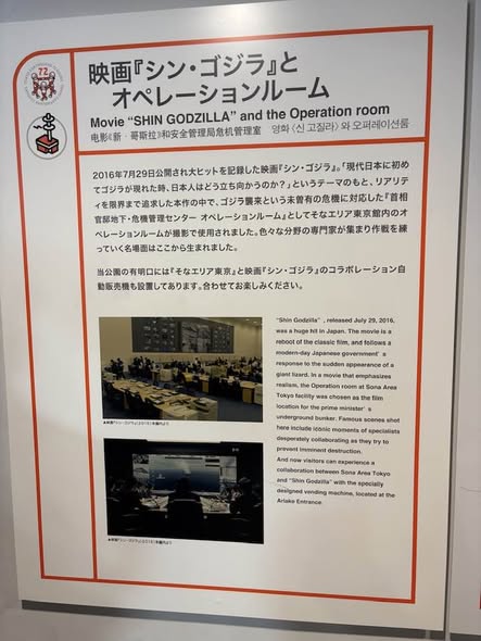 映画『シン・ゴジラ』のワンシーン、ゴジラ対策本部の撮影にも使われた緊急対策室です。